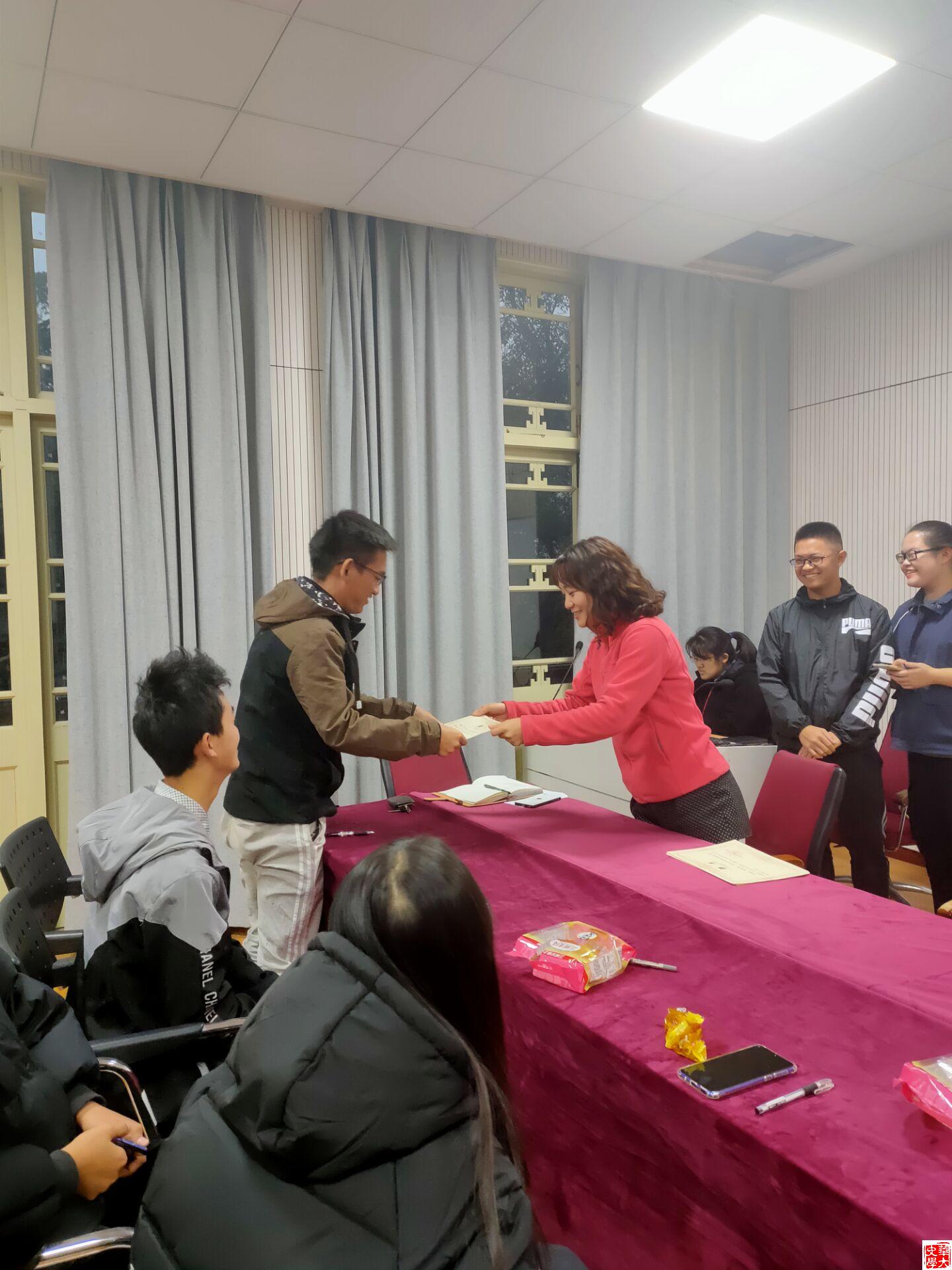 本次会议是在各班开展了第一次团日活动的背景下召开的,由年级组织部孔垂浩同学主持。会议分为"雁过留声,人过留名"的热身小游戏,各班团支书做团日活动总结,师范班、非师范班分组讨论交流,颁发聘书,秦玉琴老师做会议总结以及介绍学院整体情况。