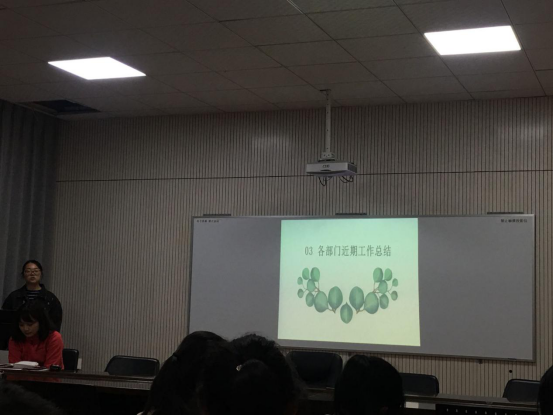 秦老师还向年级干部门介绍了院会的构架,教师的设置以及专业的设置,使干部们对院会有了更加具体得了解。希望接下来的时间里,各部门能够对出现的问题进行改正,再接再厉,更好地为同学们服务!